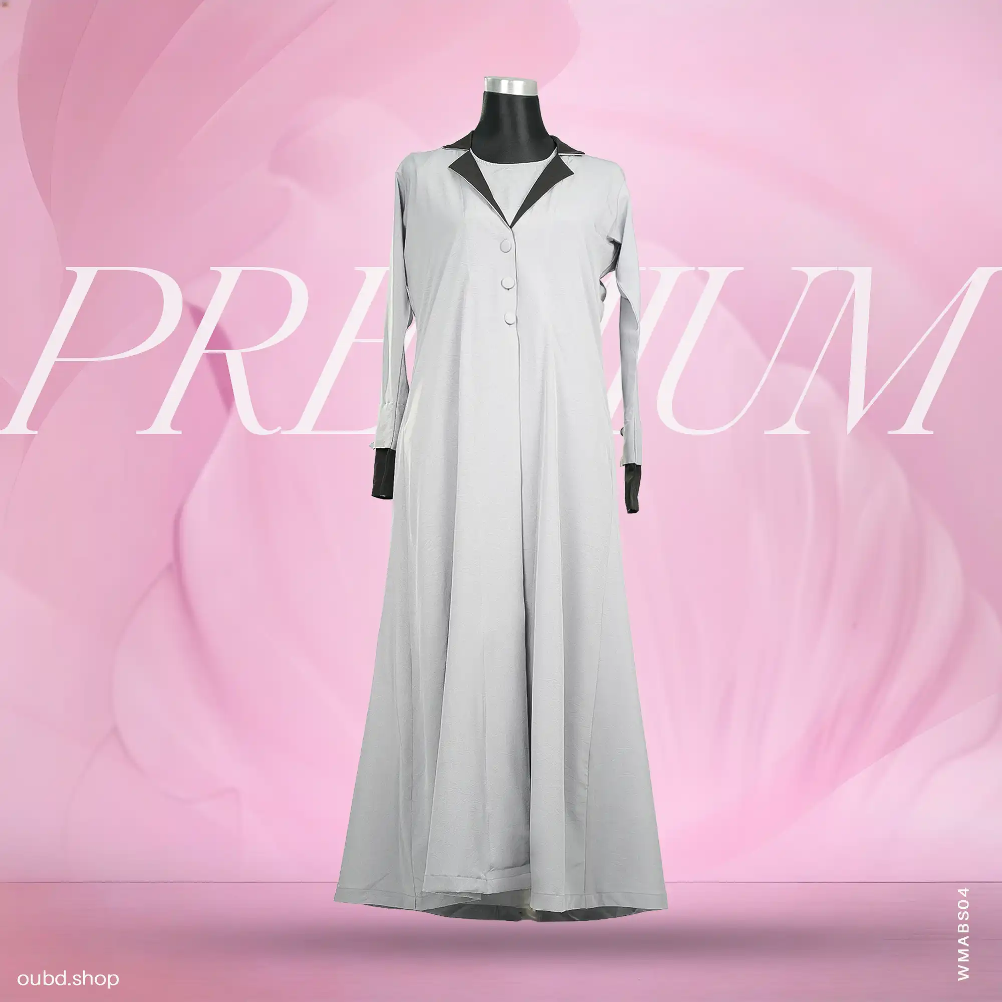 A contemporary, lighter take on Premium Contrast Lapel Coat Abaya - Ash Edition the corporate coat style.