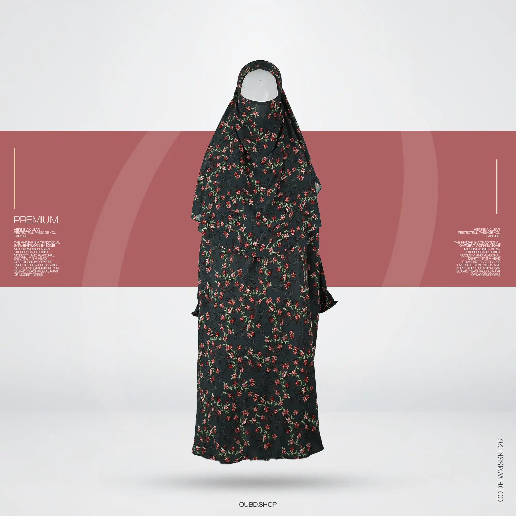 • Style: Short Khimar with a butterfly-cut drape.